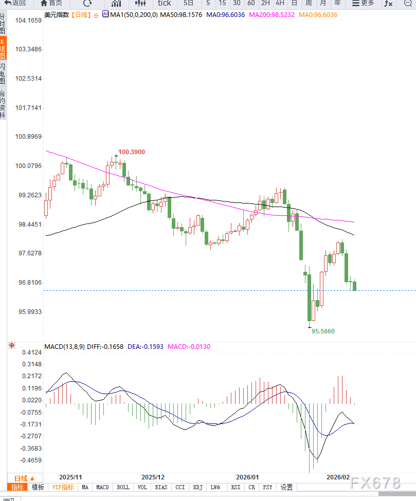 汇通财经APP讯——周三亚洲交易时段,美元指数(DXY)维持偏弱震荡,接近96.65水平。市场整体观望,美国1月非农就业报告及CPI通胀数据是当前决定美元短期方向的关键因素。